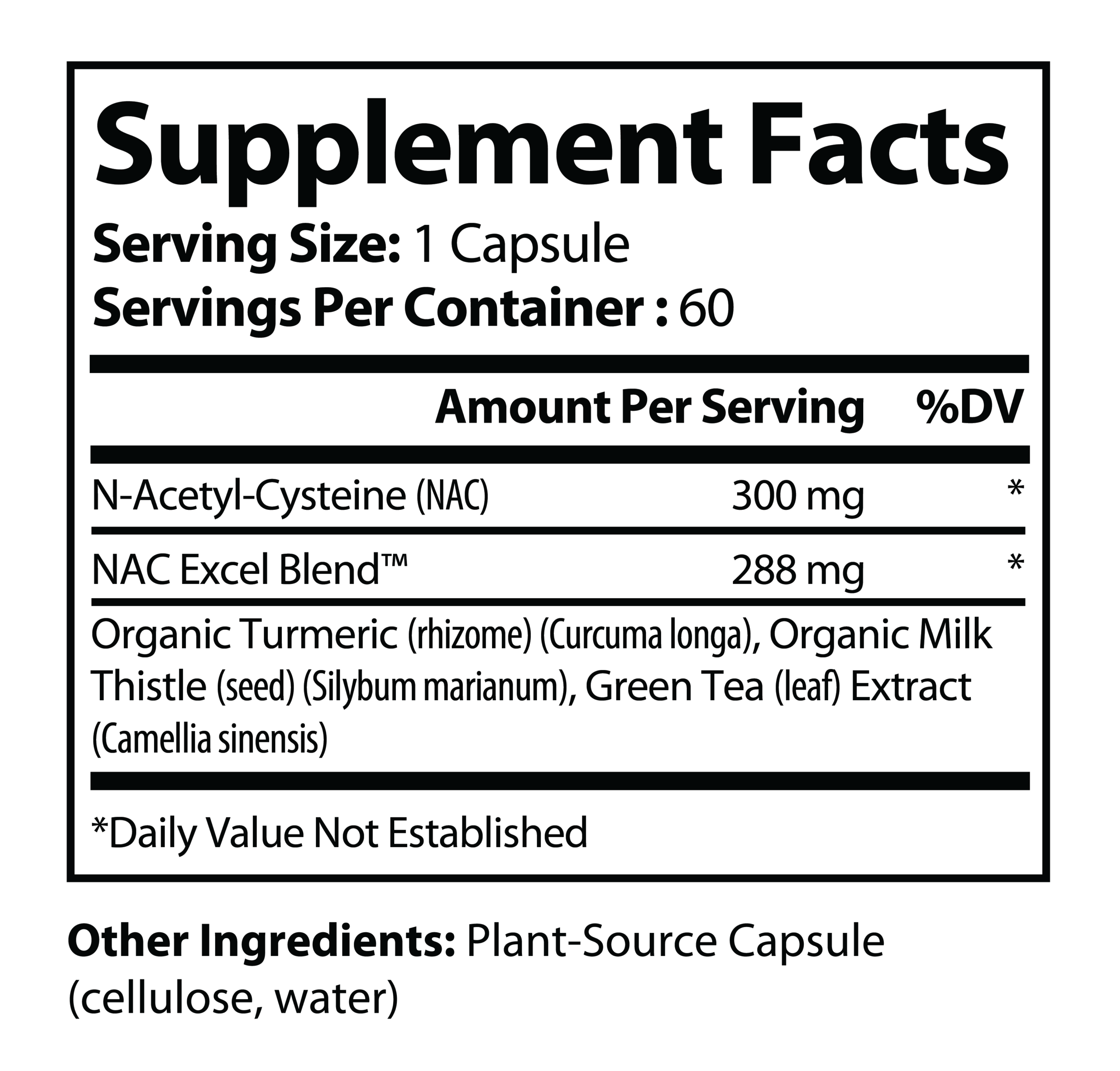 | NAC Excel Blend™ | 288 mg | Not Established |